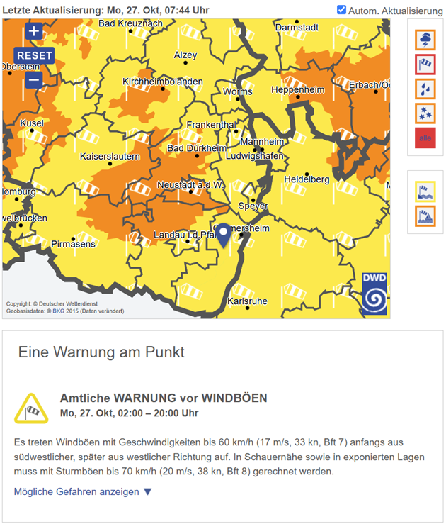 Das Wetter in der Pfalz am Montag, 27.10.2025