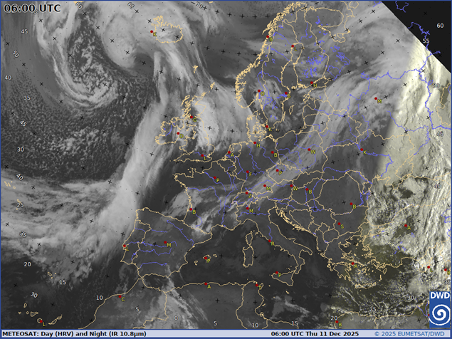 In der Nacht zum Freitag wechselnd bis gering bewölkt, gebietsweise Bildung von Nebel oder Hochnebel. Weitgehend niederschlagsfrei. In der zweiten Nachthälfte dichtere Bewölkung und etwas Regen möglich. Tiefsttemperaturen zwischen 6 und 3 Grad.