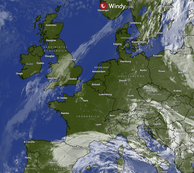 Nacht: Bewölkung nimmt von Westen her leicht zu (ARPEGE-Tendenz), bleibt aber trocken. Tiefstwerte um 4°C.