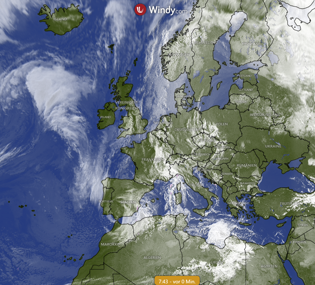 Vormittag: Der Nebel löst sich zögerlich auf, gefolgt von einem Wechsel aus Sonne und lockeren Wolkenfeldern. Der Wind weht schwach aus Südwest (ca. 1 Bft).