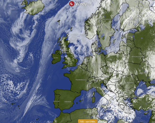Vormittag: Der Nebel löst sich zögerlich auf, gefolgt von einem Mix aus Sonne und lockeren Wolken. Windschwach aus Südwest. Der Luftdruck liegt stabil bei ca. 1018 hPa.