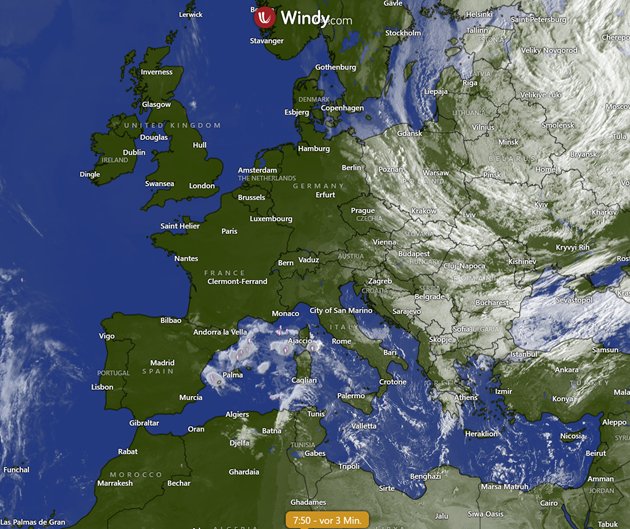 In der Nacht zum Donnerstag gering bewölkt oder klar. Niederschlagsfrei. Örtlich Nebelbildung. Tiefsttemperatur zwischen 7 und 4 Grad.