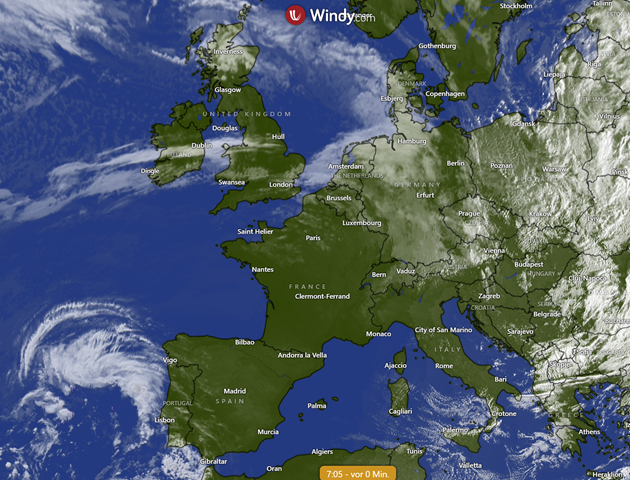Heute stark bewölkt bis bedeckt und zeitweise Regen. Höchsttemperatur zwischen 11 und 15, in höheren Lagen 9 und 11 Grad. Mäßiger Wind aus Südwest mit starken, im höheren Bergland und bei Schauern stürmischen Böen oder Sturmböen.