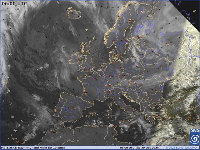 In der Nacht zum Donnerstag weiterhin stark bewölkt und gebietsweise Sprühregen, im Bergland Schneegriesel oder gefrierender Sprühregen. Tiefsttemperaturen zwischen +1 und -3 Grad. Weiterhin teils stark böiger Wind aus südwestlicher bis westlicher Richtung.