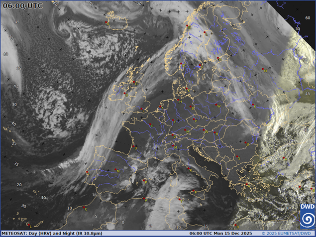 Zwischen hohem Druck über Südosteuropa und tiefem Druck bei Island gelangt mit südlicher bis südwestlicher Strömung milde und feuchte Luft in die Pfalz. Diese trocknet im Nachmittags- und Abendverlauf gebietsweise zunehmend ab. In der Nacht zum Dienstag wird aus Südwesten wolkenreiche Luft herangeführt.