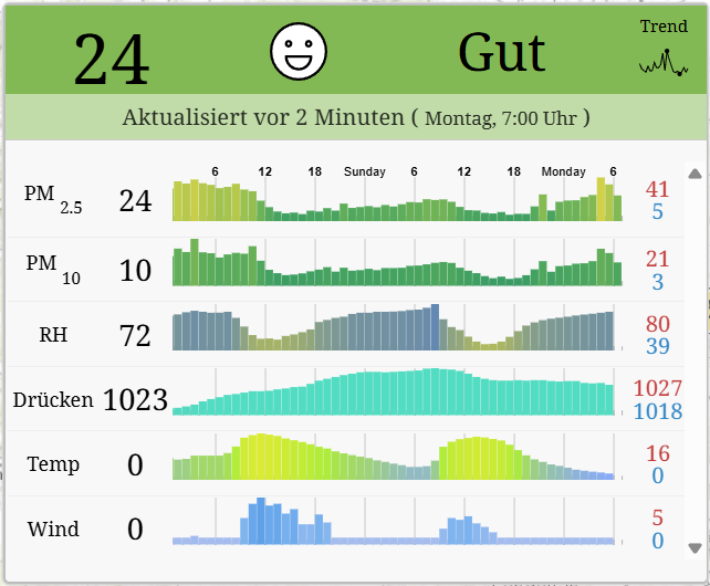 Nachmittag: Sehr mild mit Maxima bis 17°C. Luftfeuchtigkeit sinkt auf ca. 40%. Wind schwach aus Nordost.