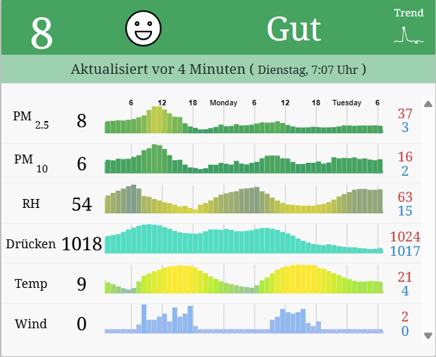 • Abend: Angenehm mild bei 18°C. Der Luftdruck liegt stabil bei ca. 1023hPa.