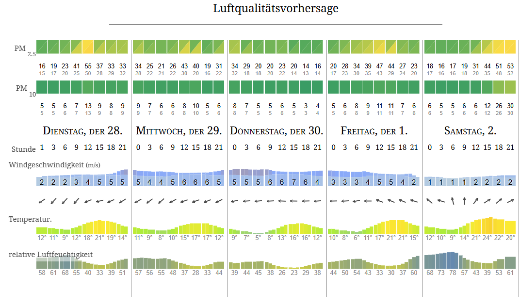 • Nachmittag: Höchsttemperatur bei 19°C bis 21°C. Luftfeuchtigkeit steigt leicht an auf ca. 55%.