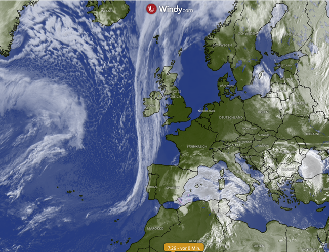 Abend: Langsame Zunahme von Schleierwolken aus Westen laut ARPEGE, aber es bleibt trocken.