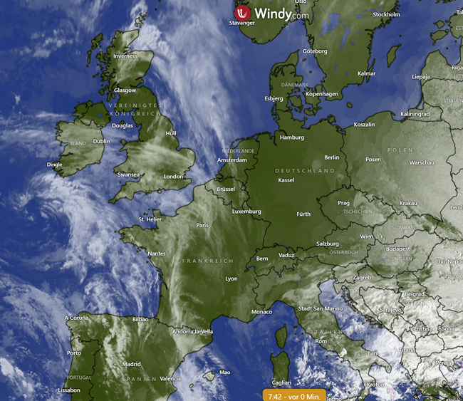 Nachmittag (12:00 – 18:00): ARPEGE simuliert ein Verharren der Trübung. Nur punktuell Auflockerungen. Es bleibt kühl bei max. 4°C. Luftfeuchtigkeit konstant hoch (90%).