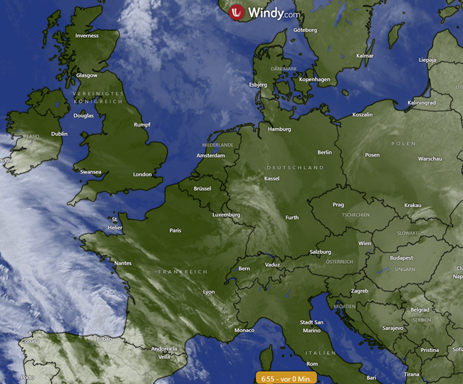Besonderheit: In dieser Nacht lockert die Bewölkung gegen Morgen auf. Das ARPEGE-Modell berechnet ein hohes Risiko für Bodenfrost in Bodennähe (5 cm über Gras), auch wenn die Lufttemperatur knapp über dem Gefrierpunkt bleibt.